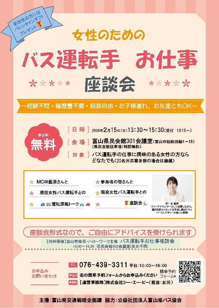 なお、当日はハローワークによる「バス運転手お仕事相談会」(男女不問)も同時開催しております。県内バス会社の採用担当者(6社程度予定)がバス運転手のお仕事へのあんな疑問やこんな疑問を何でも答えてくれます。こちらも是非ご参加下さい。